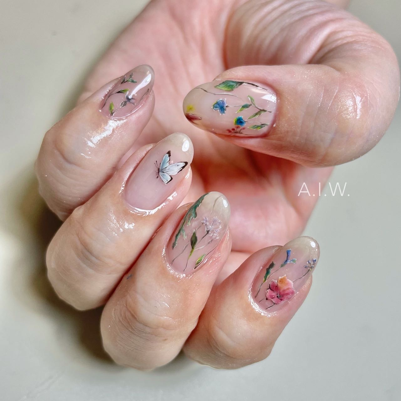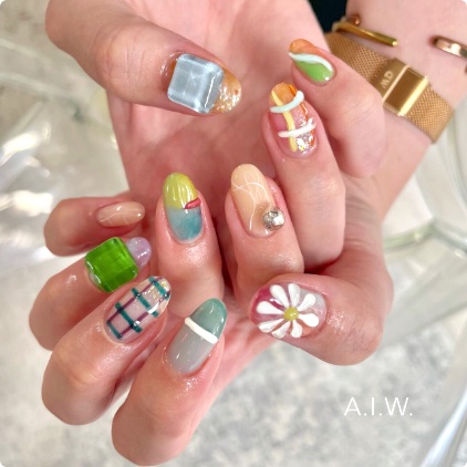 A.I.W. / Nail&Eyebrowでは、お客様だけの`特別な2.5時間`をキャッチフレーズに、お客様一人一人に寄り添ったサービスを提供しております。ニュアンスネイル、オフィスネイル、個性派ネイル、どんなデザインでも喜んでご案内いたします。